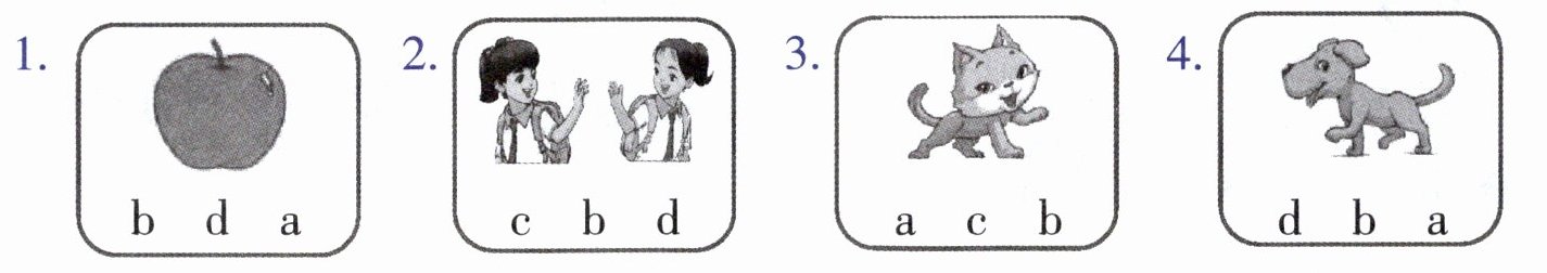 一、Look, listen and circle. 看图,听录音,圈出你所听到单词的首字母。