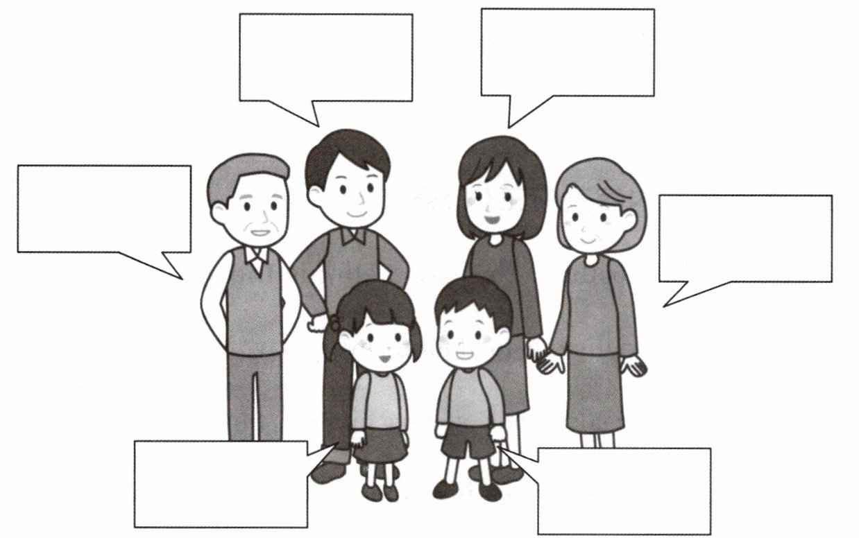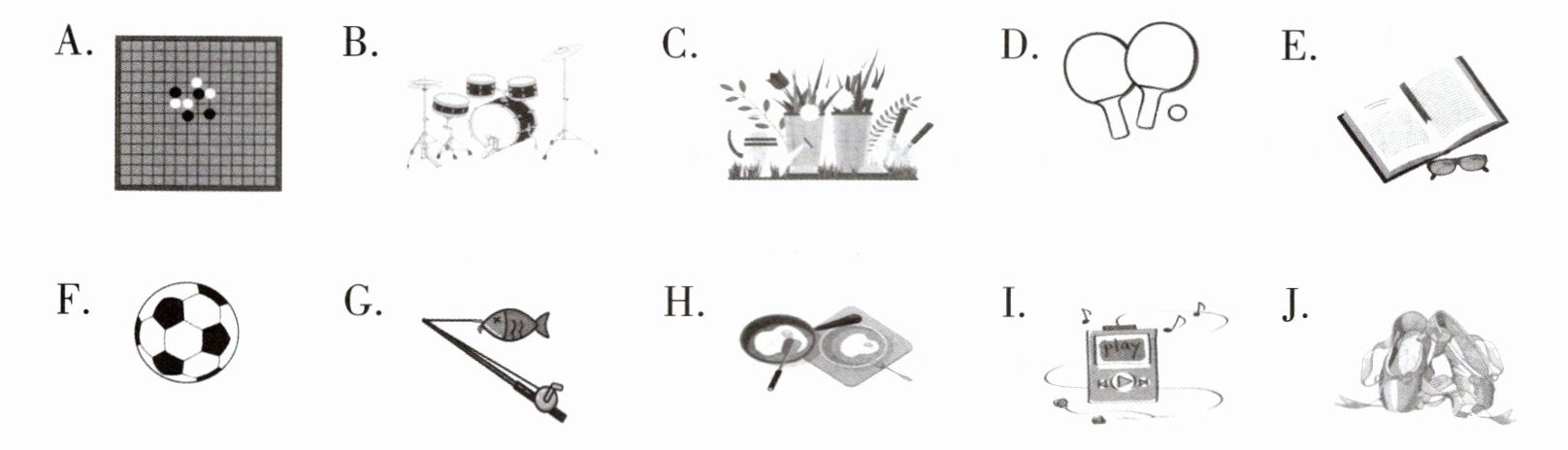 一、Look, listen and fill. 看图,听录音,将家人的爱好填在图旁方框内。(填序号)