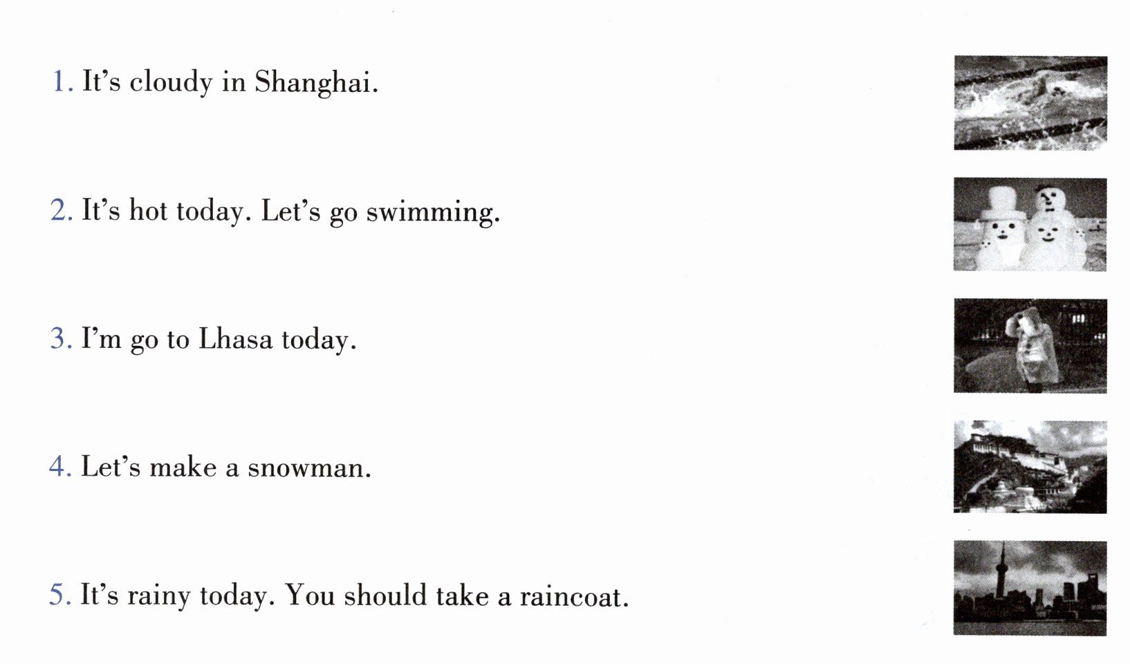 一、Look, listen and judge. 看图,听录音,判断下列各图与所听内容是否相符,相符画“√”,不符画“×”。