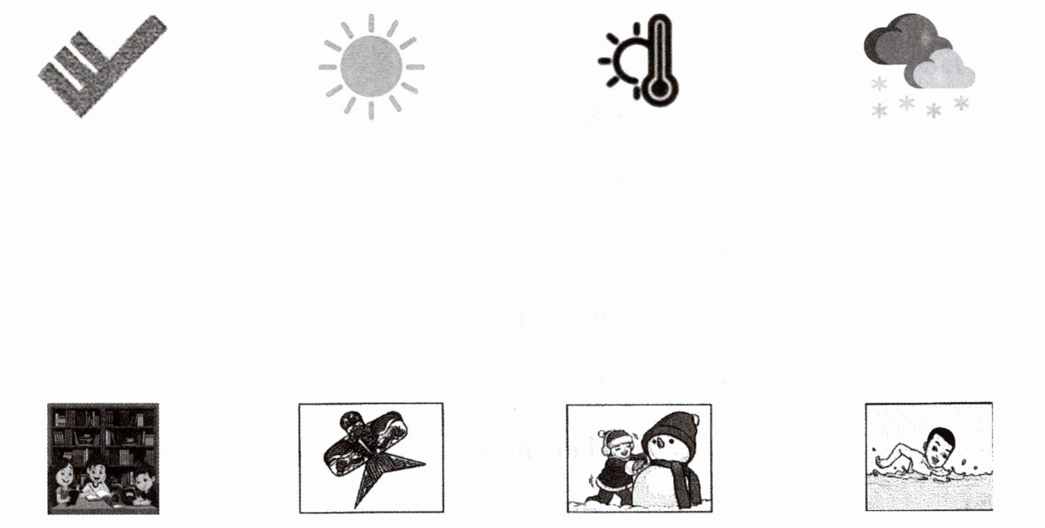 一、Look, listen and match. 看图,听录音,将天气与活动连线。