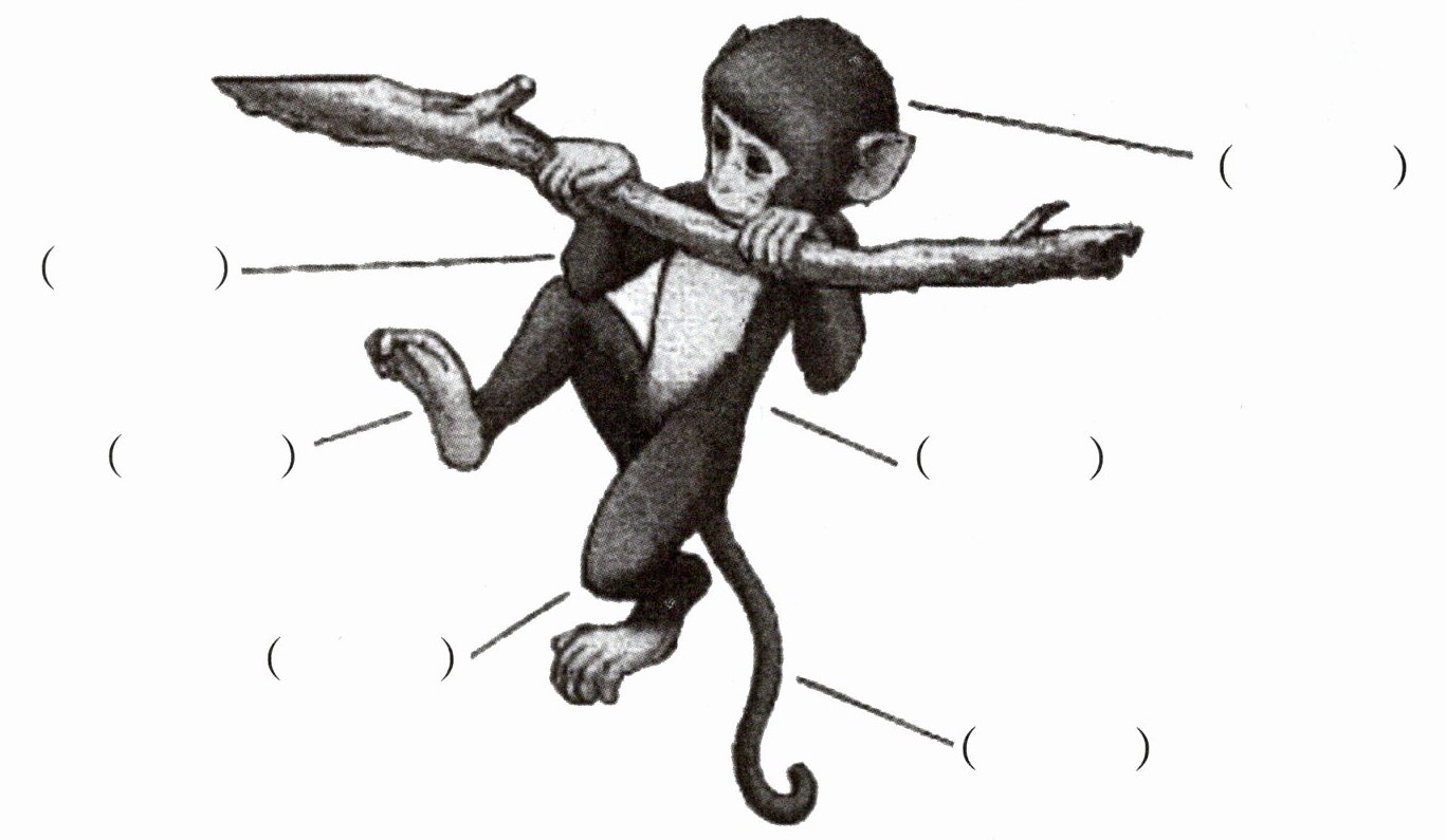( )1.The monkey ______ a long leg.