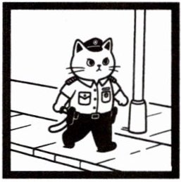 1. He is a white cat. His eyes are big and bright (明亮的). He wears a police cap on his head. He is smart and handsome (帅气的).