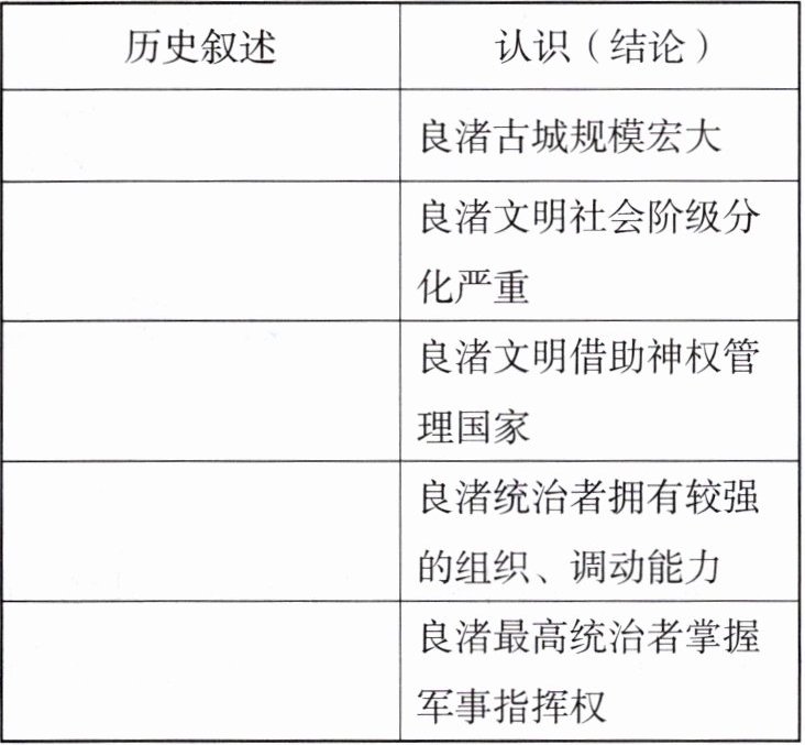 【解析】第(1)问考查学生对典型考古发现器物的认知,通过实物史料了解良渚古城、陶寺古城作为早期国家的历史地位。第(2)问考查学生提取历史信息的能力、培养史料实证和历史解释核心素养。本题提供历史叙述与历史认识材料,学生从历史信息中提取出良渚古城遗址作为早期国家的判断理由,并与第(1)问相结合,掌握早期文明的基本特征,初步认识历史叙述和历史认识之间的区别与关系。