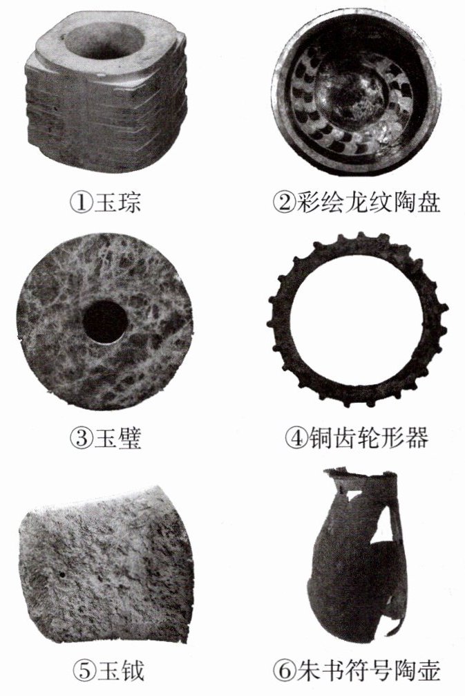 (1)小津同学利用假期前往良渚古城遗址、陶寺古城遗址进行参观,请帮助他按照发现地点将下列文物进行整理分类。(填序号)
