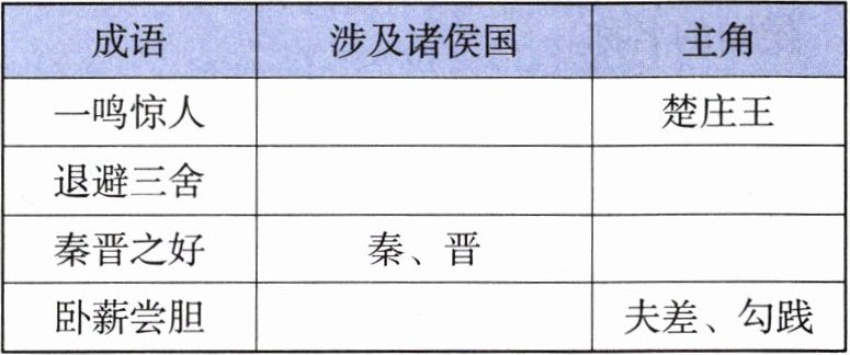 (2)| 成语 | 涉及诸侯国 | 主角 |