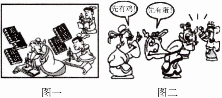(1)图一、图二是与战国时期百家争鸣相关的两幅漫画,请你分别给图一、图二配上图注说明。