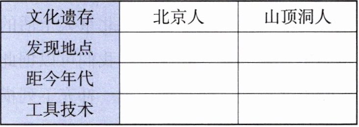 1. 完成北京人与山顶洞人对比表。
