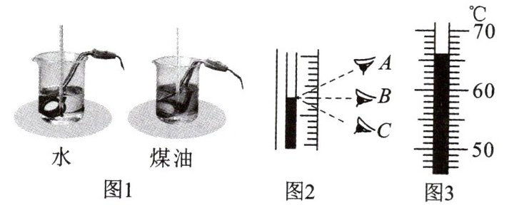 来比较不同物质吸热能力的强弱。(4) 如图2所示,小姜正确使用温度计测量液体的温度,按照图中