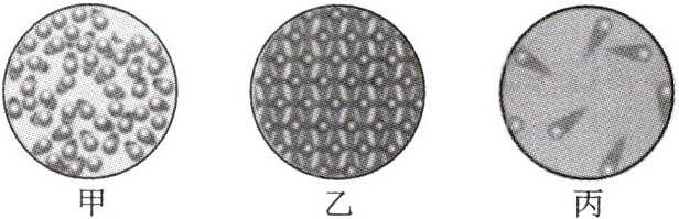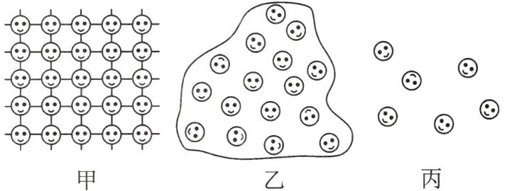 C.上图是物质在三种不同状态下的分子模型,图乙中分子相距最近,且处于静止状态