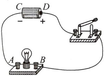 ,小灯泡中形成电流的自由电子定向移动的方向是A→B