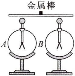 2. 如图所示,验电器 A 带正电荷,B 带负电荷,若用金属棒连接两个验电器的金属球,电子移动的方向是