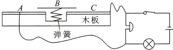 11. [模型建构]如图是具有报警功能的文物展示台,该展示台由木板、弹簧、金属片 $A$、$B$、$C$ 和报警电路组成,其中,弹簧上的金属片 $B$ 相当于
