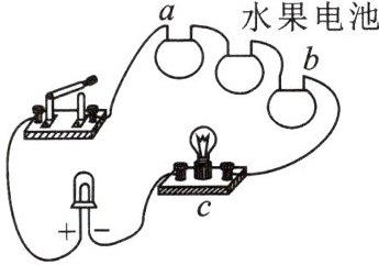 性,可以判断出电路中的电流方向,从而分析可知水果电池的a