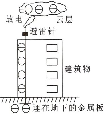 10. (广州市中考)如图,带负电的云层靠近建筑物上的避雷针时,向避雷针剧烈放电形成雷电,下列说法正确的是 (