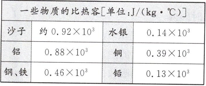 J/(kg·℃)。下表是一些物质的比热容,查表可知,这种金属球可能是由钢、铁