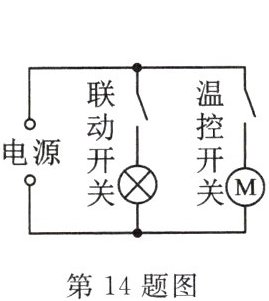 14. 如图所示是家用电冰箱电路图。冰箱压缩机由温控开关自动控制,冷藏室照明灯由冰箱门联动开关控制,冰箱门关闭后,联动开关处于