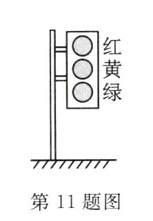 11. 如图为路口交通指示灯的示意图。指示灯可以通过不同颜色灯光的变化指挥车辆和行人的交通行为。据你对交通指示灯的了解可以推断(