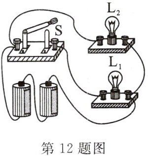 12. 如图所示,闭合开关S,电灯$L_1$和$L_2$的连接方式是