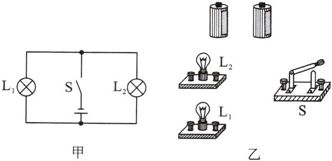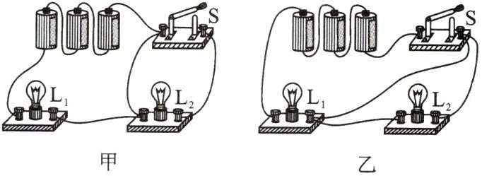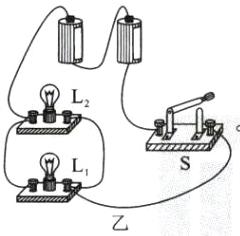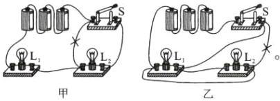 7. 如图所示的实物连接图中,甲图为两灯串联,乙图为两灯并联。图中是否有错? 请在错处打“×”,并在原图上加以改正,改动的线要尽量少。