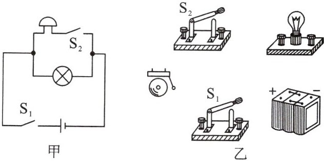 6. 根据如图甲所示的电路图,用笔画线代替导线,将图乙中的元件连接起来。
