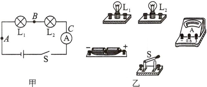 2. 如图甲是某同学探究“串联电路中电流的规律”的实验电路图,乙图是所给的实验器材。