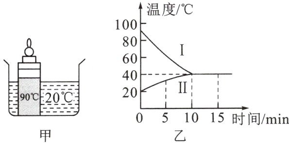 15. [科学探究]如图甲,将盛有热牛奶的瓶子放在冷水中,图乙是336g牛奶与500g冷水的温度随时间变化图像,图中表示牛奶温度随时间变化的曲线是