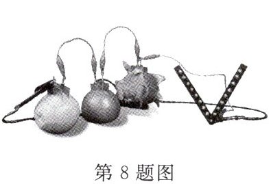 8. 如图所示,酸甜多汁的水果提供的电能点亮了发光二极管,其中水果相当于电路中的
