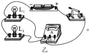 (1)请根据图甲中的电路图,用笔画线代替导线将图乙中的电路连接完整,使电流表测量流过小灯泡$L_1$的电流。连接电路时应_________开关。