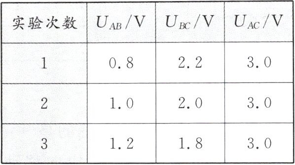 (4) 经过多次实验,将得到的数据记录在表中,分析实验数据,可得到串联电路的电压特点是