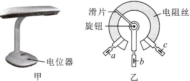 5. 图甲为亮度可调的台灯,电位器是调节其亮度的装置;图乙为电位器的内部结构示意图,a、b、c是它的三个接线柱,旋钮可带动滑片转动。把a和c接入电路时,