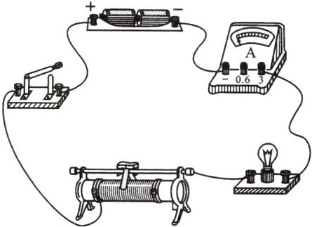 6. 某同学按照下面的实物图使用滑动变阻器改变小灯泡的亮度,并且用电流表测量电路中的电流。