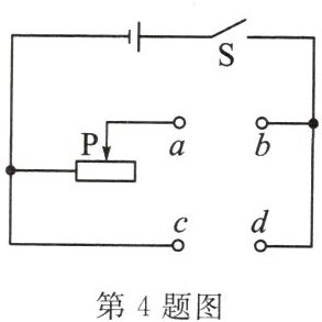 4. 小明自制了一盏可调节亮度的台灯,电路如图所示,粗心的小明忘记把灯泡画上去,你认为灯泡应画在图中
