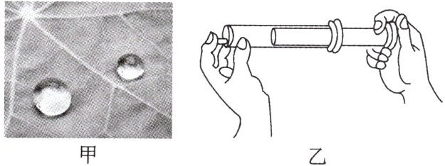 6. 如图甲所示,荷叶上两滴水珠接触时,能自动结合成一滴较大的水珠,这一事实说明分子间存在