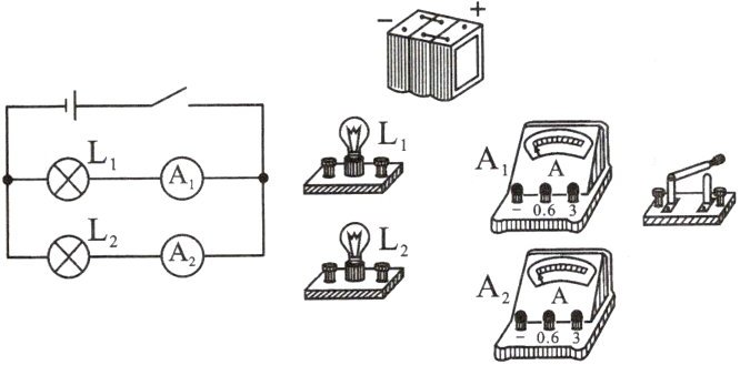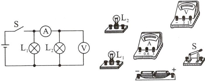 5. 根据电路图,用笔画线代替导线,将图中所示元件连接起来。