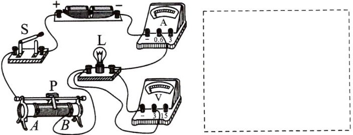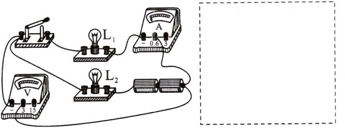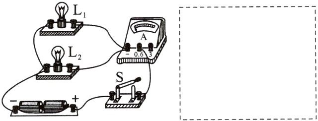 1. 请根据实物图,在虚线框中画出对应的电路图。