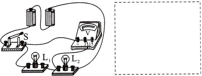 3. 根据如图所示的实物连接图,在虚线框中画出电路图。