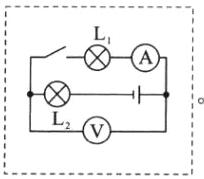 4. 根据如图所示的实物连接图,在虚线框内画出对应的电路图。