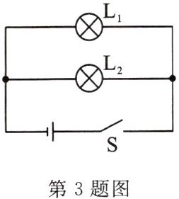 3. 如图所示的电路中,小灯泡$L_{1}$、$L_{2}$规格相同,闭合开关$S$后,发现$L_{1}$不亮,$L_{2}$亮。此电路的故障可能是(