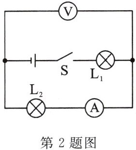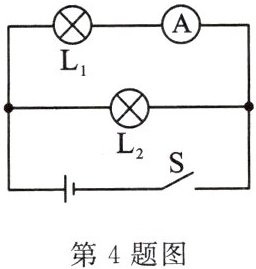 4. 如图所示,闭合开关后,小灯泡$L_{1}$、$L_{2}$均正常发光,过一会儿发现有一个小灯泡熄灭,而电流表的示数不变。则电路中出现的故障可能是(