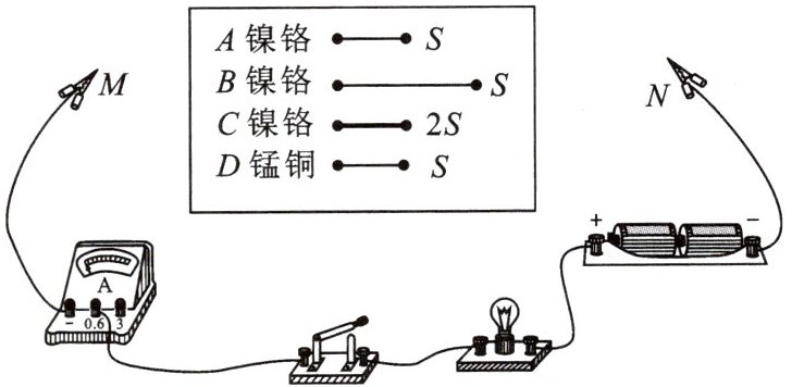 (1) 实验中,在 $M$、$N$ 之间分别接上不同的导体,则通过观察