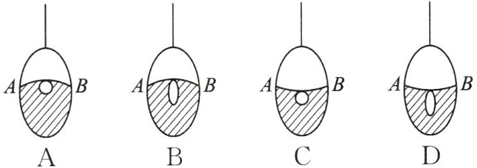 14. [科学推理]如图所示,金属框架的A、B间系一个棉线圈,先使其布满肥皂膜,然后将P和Q两部分的肥皂膜刺破后,线的形状将变为下列选项中的(