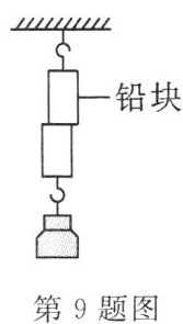 9. (盐城市中考)将两个表面光滑的铅块相互挤压,它们会粘在一起,不容易拉开。这一现象说明(