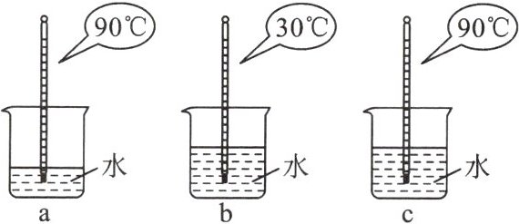 3. 如图所示,图a杯中水量较少,图b与图c杯中的水量相同,通过比较可知,图
