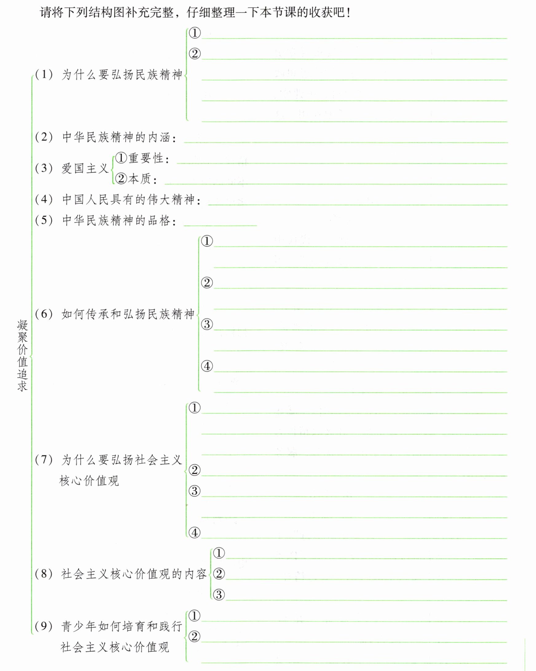 (8)①国家层面:富强、民主、文明、和谐 ②社会层面:自由、平等、公正、法治 ③公民层面:爱国、敬业、诚信、友善