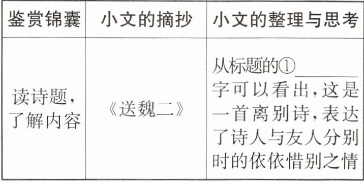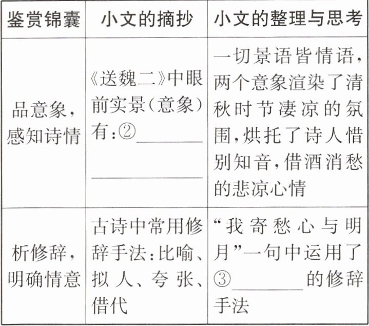 15. 小文课堂上善于倾听,课后善于总结,以下是他整理的关于这两首诗的阅读笔记,请你帮忙补充完整。