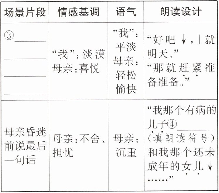 3. 【朗读设计】有感情地朗读利于融入文本,请仿照示例,完成朗读设计。