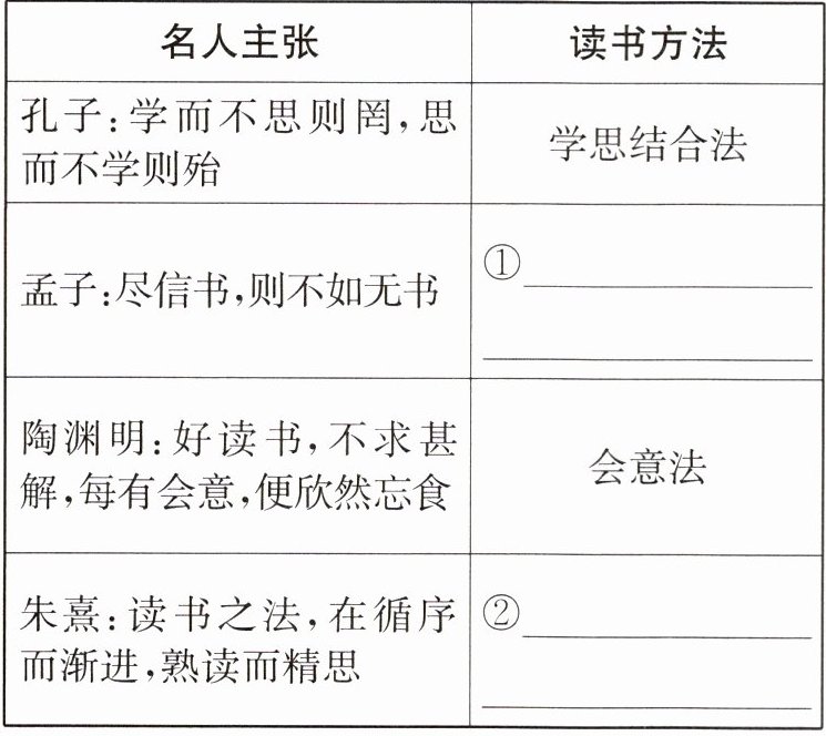 3.①质疑读书法(独立思考法) ②循序渐进法(熟读精思法)