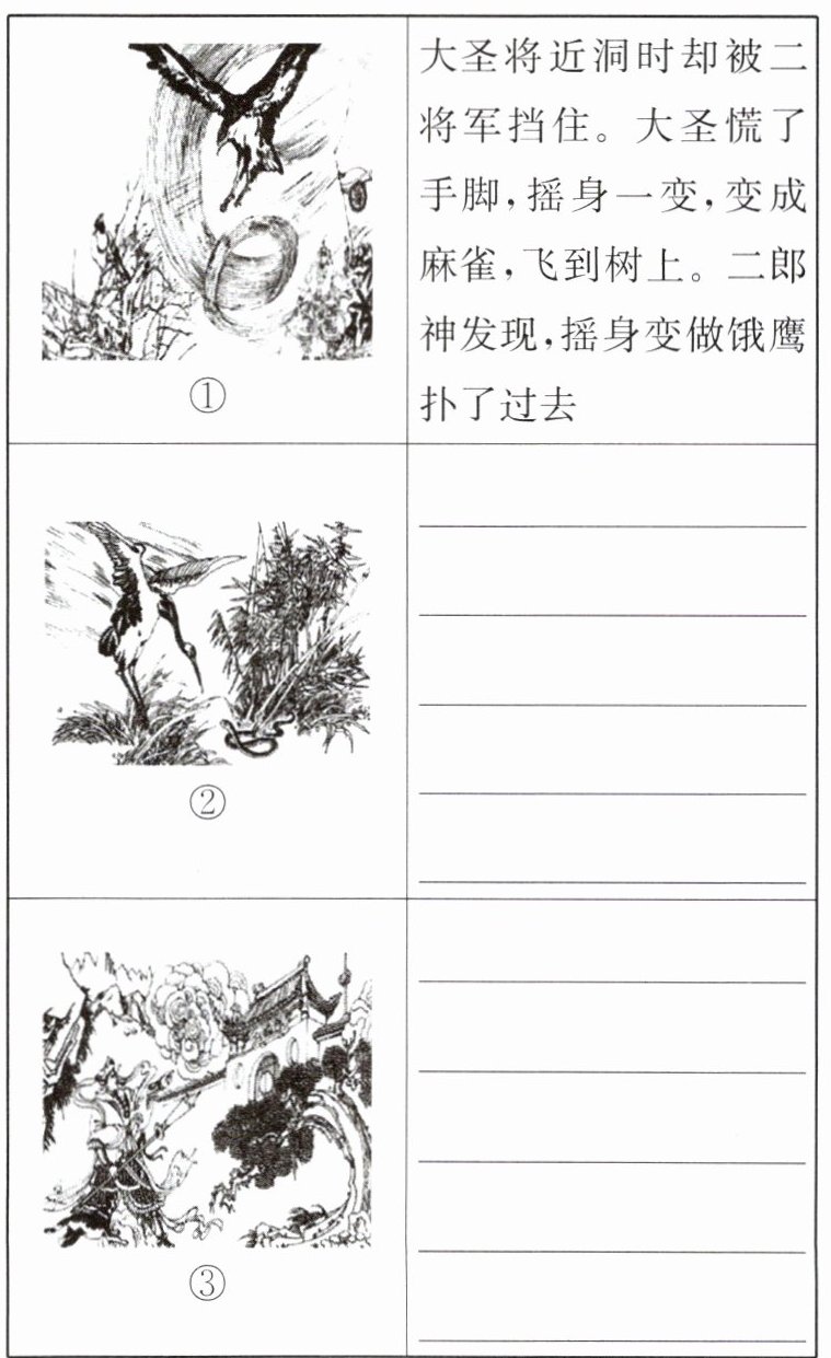4. 阅读课文,结合下面连环画提示,补写出②③处的相关故事情节。