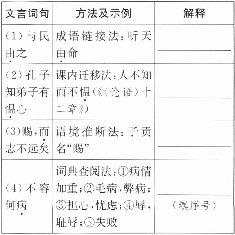 9. [原创试题]参考表格中提示的方法,解释下列句子中加点的词。