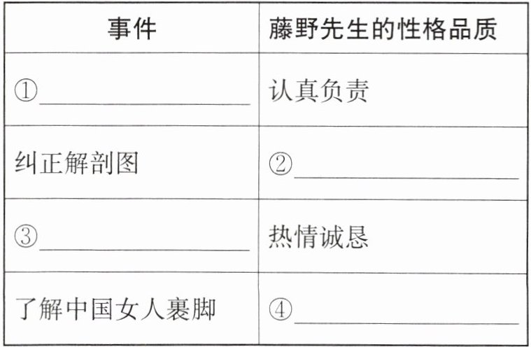 5. [情节梳理]概括课文中藤野先生和“我”交往的事件,完成下表的填写。
